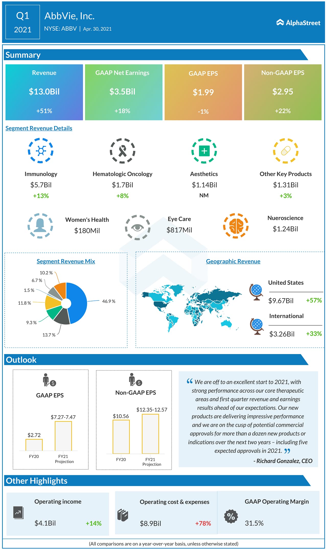 AbbVie (NYSE: ABBV) today reported its first quarter financial results for the period ended March 31, 2021.