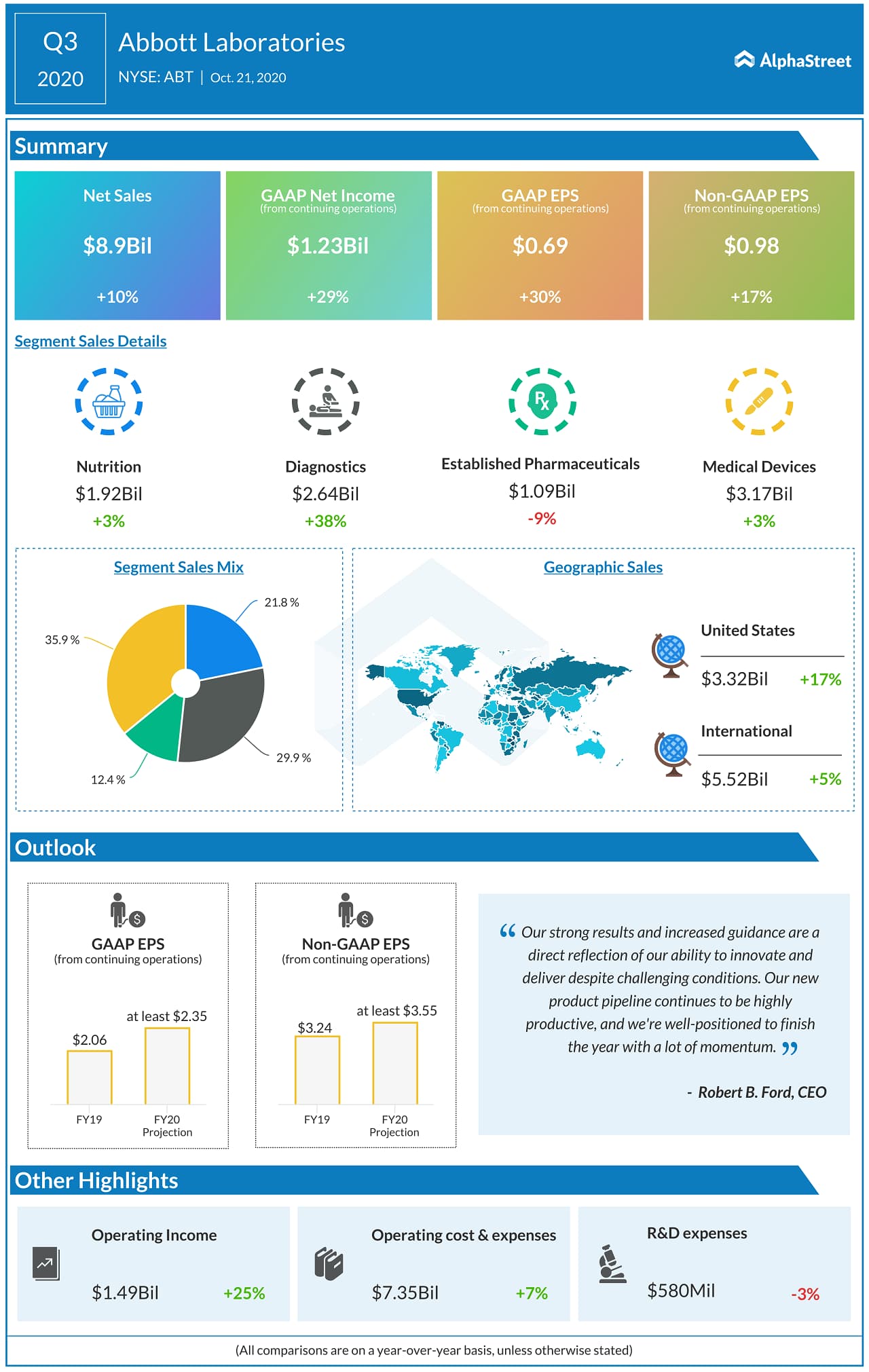 Abbott (NYSE: ABT) today announced its third quarter financial results for the period ended September 30, 2020.