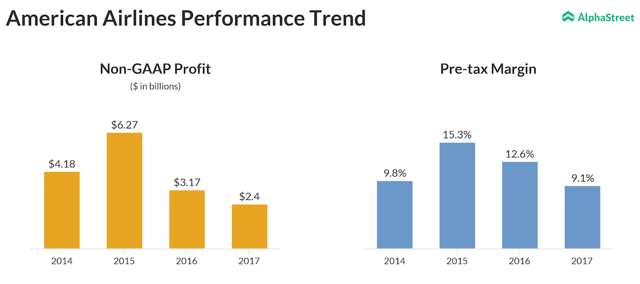 For the past three years, American Airlines’ annual profits and pre-tax margins have seen a downward trend, which is likely to continue through this year as well. Over the past few months, the company has been aggressively plugging underperforming routes to focus better on markets that rake in profits.