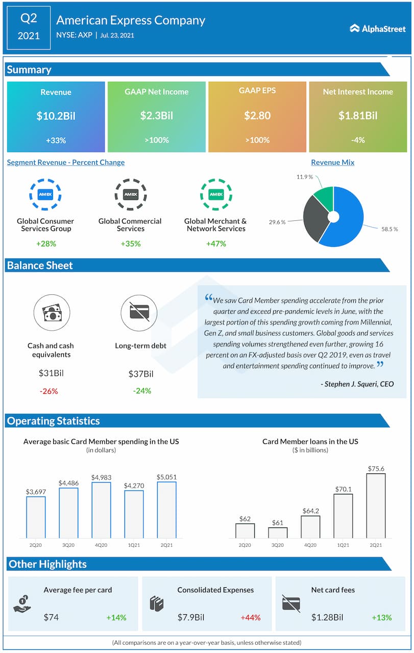 American Express Company (NYSE: AXP) reported second quarter 2021 earnings today.