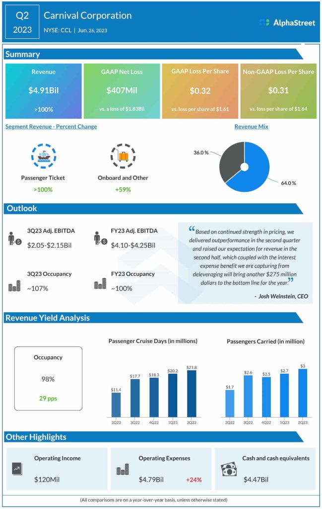 “This has been a fantastic start to the year. We delivered another strong quarter that outperformed guidance on every measure while concluding a monumental wave season that achieved all-time high booking volumes at considerably higher prices,” said Carnival’s chief executive officer Josh Weinstein.