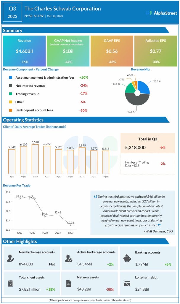 The Charles Schwab Corporation (NYSE: SCHW) reported its third quarter 2023 earnings results today.