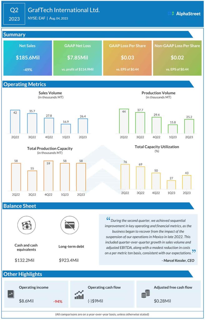 GrafTech International Ltd. (NYSE: EAF), a manufacturer of graphite electrode products, reported a net loss for the third quarter of 2023 when the company’s sales declined 48%.