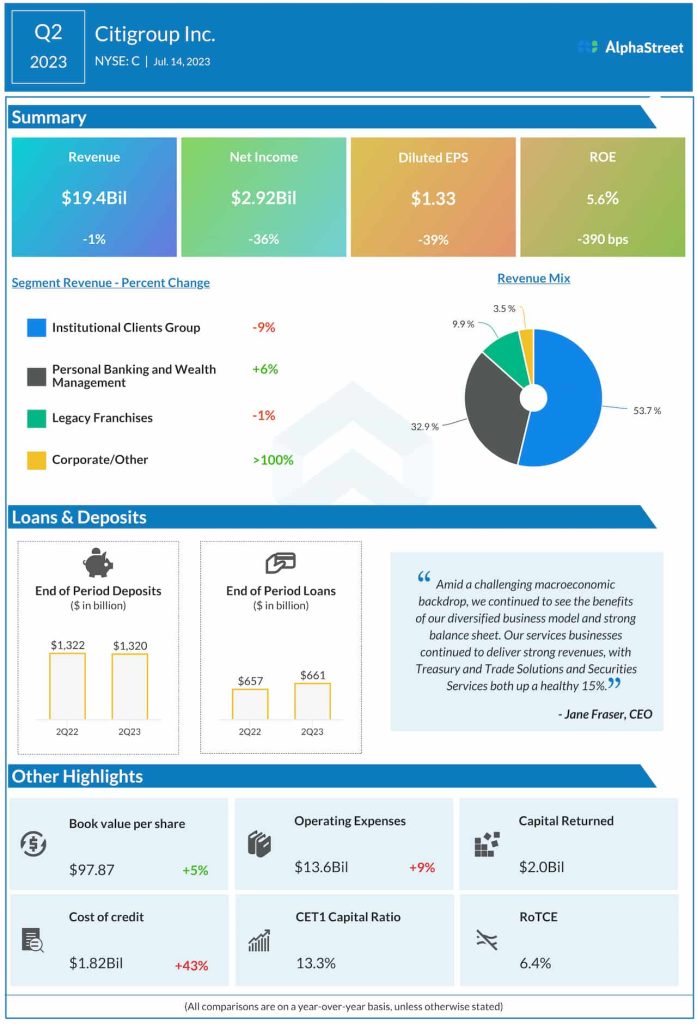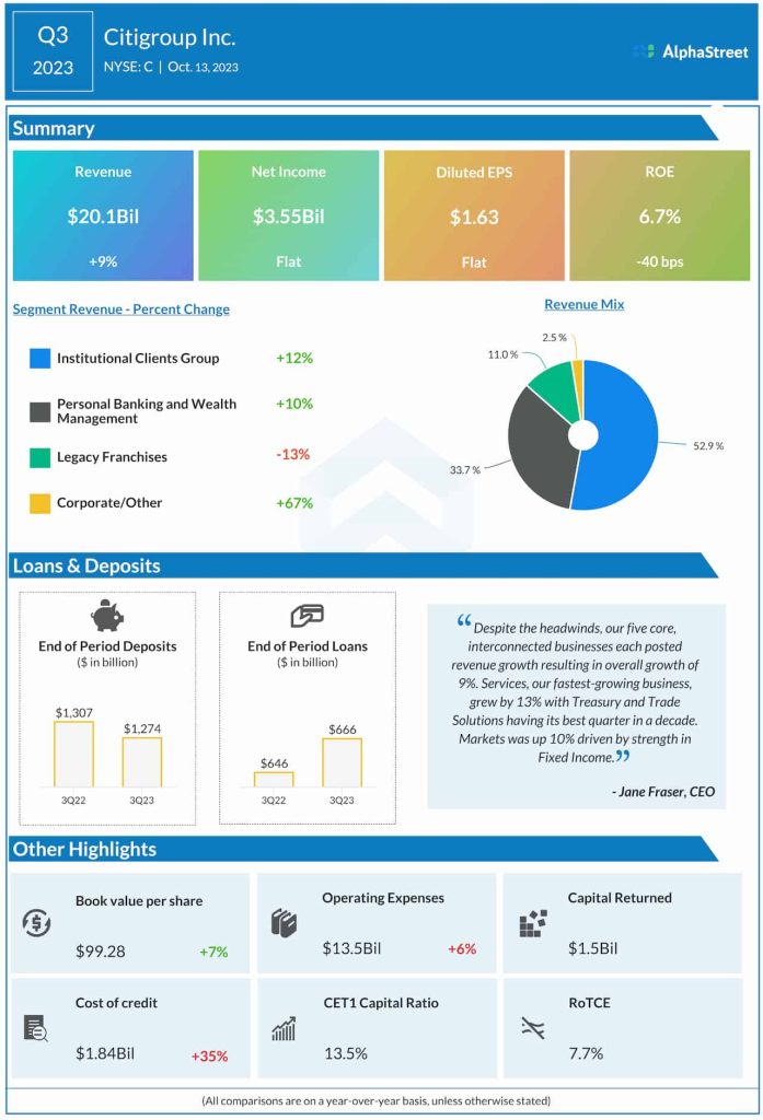 Banking behemoth Citigroup Inc. (NYSE: C) on Friday reported a net loss for the fourth quarter of 2023 compared to profit last year. Revenues declined 3% during the three-month period.