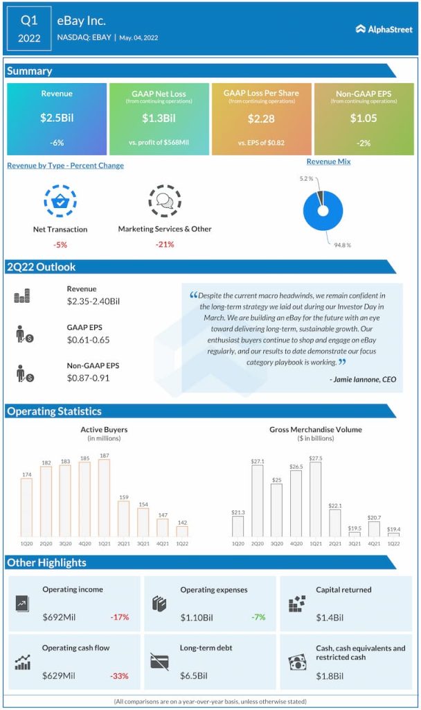 E-commerce firm eBay Inc. (NASDAQ: EBAY) on Wednesday reported flat earnings for the second quarter of 2022 when the company’s revenues decreased. However, both the top-line and earnings beat analysts’ estimates.