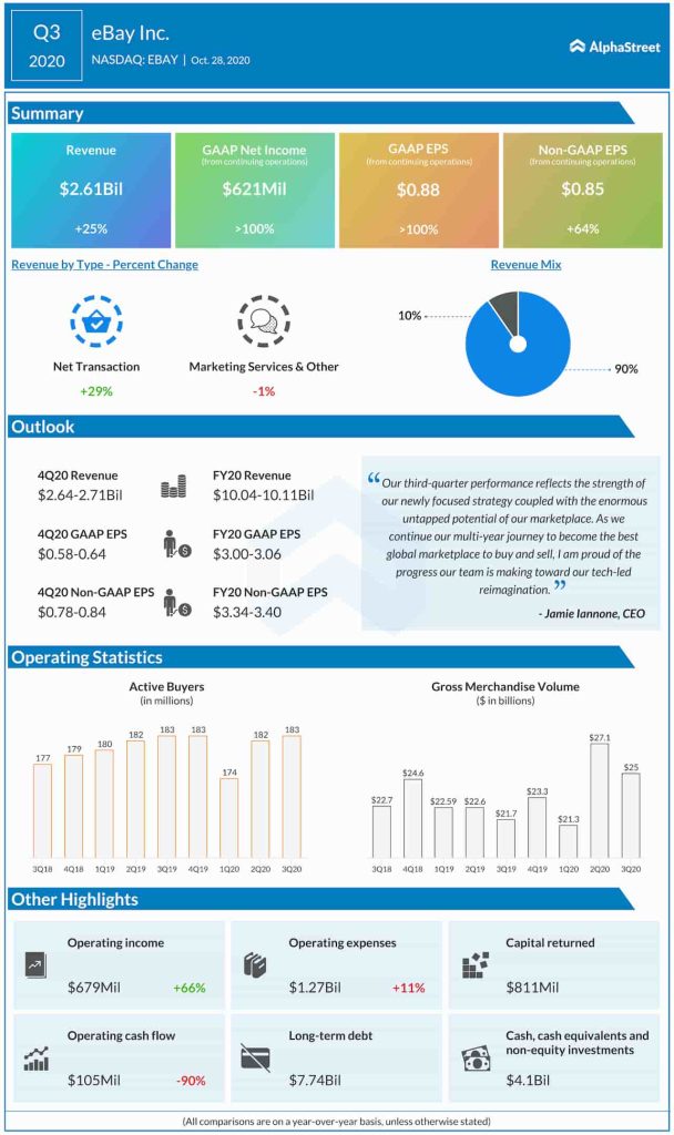 E-commerce giant eBay Inc. (NASDAQ: EBAY) reported higher earnings and revenues for the fourth quarter of 2020.
