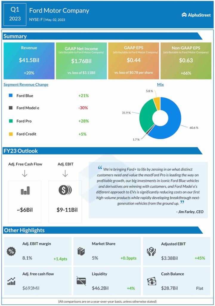 September quarter revenue increased 11% year-over-year to $43.8 billion. The top line benefitted from strong growth in the Ford Blue and Ford Pro divisions. Adjusted earnings grew 30% from last year to $0.39 per share, but missed estimates.
