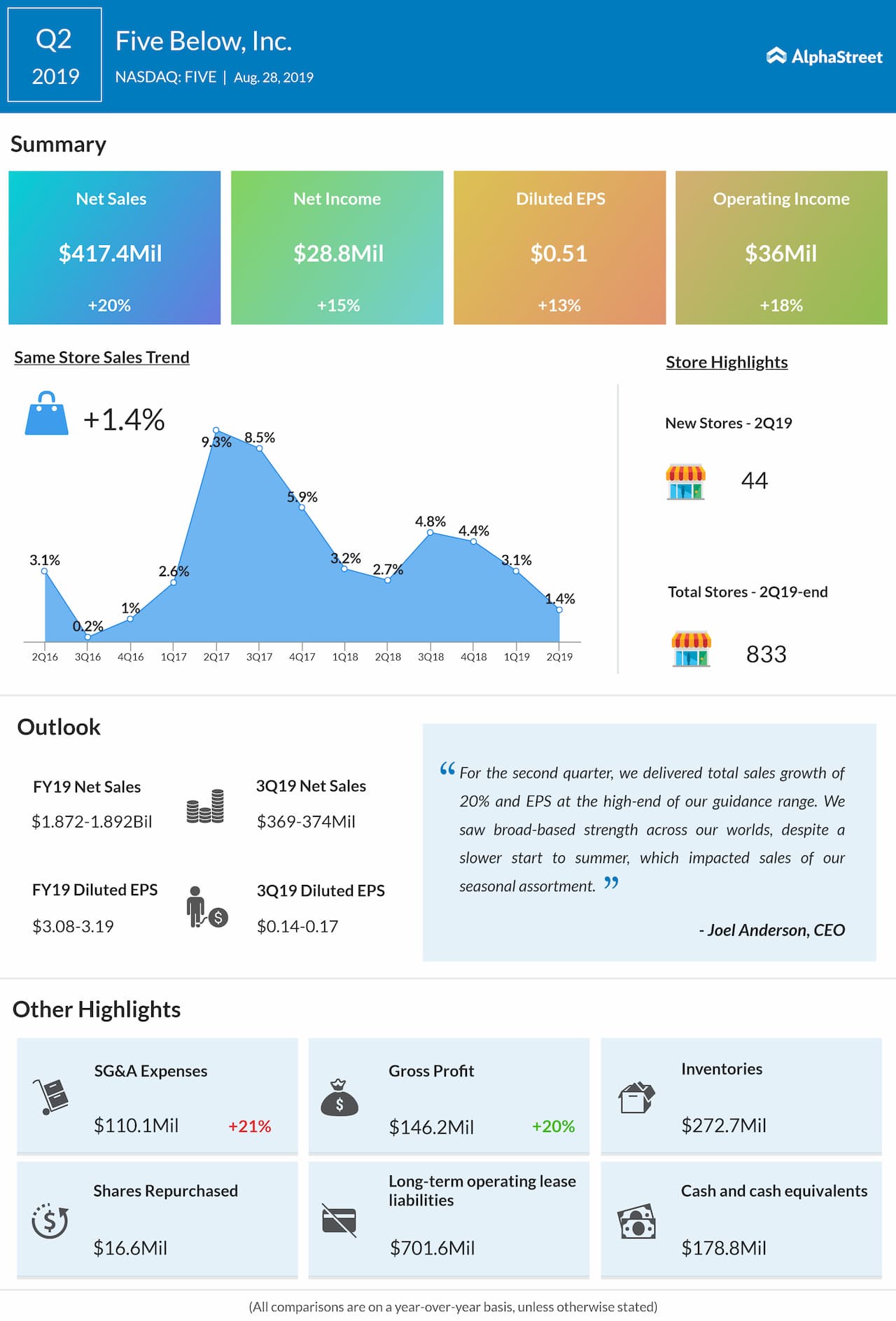Despite a slowdown in comparable-store sales, Five Below’s revenues grew by a fifth to $417 million in the third quarter, when the company added several new units to its store network. While the top-line fell short of expectations, earnings rose in double digits to $0.51 per share and topped the Street view.