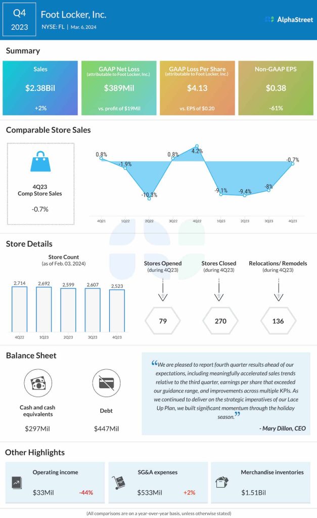 Foot Locker, Inc. (NYSE: FL) has reported a net loss for the second quarter of 2024 when the footwear retailer’s sales increased modestly.