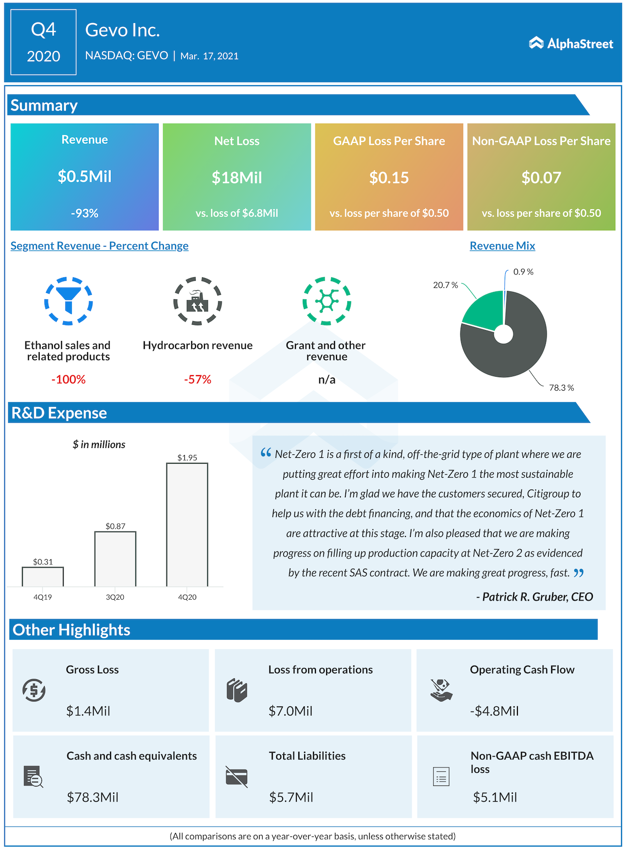 Gevo Q4 2020 earnings infographic