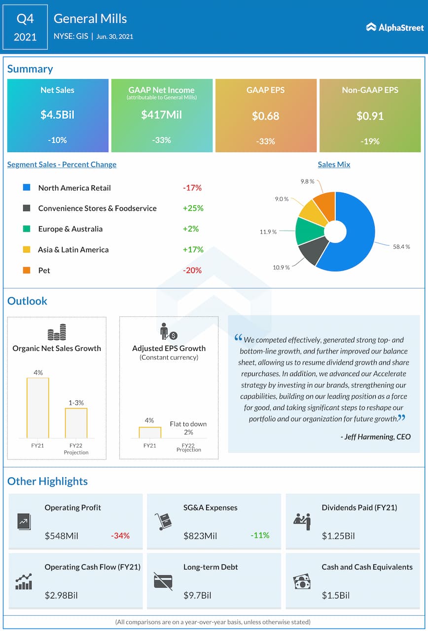 General Mills, Inc. (NYSE: GIS) reported fourth quarter 2021 earnings results today.