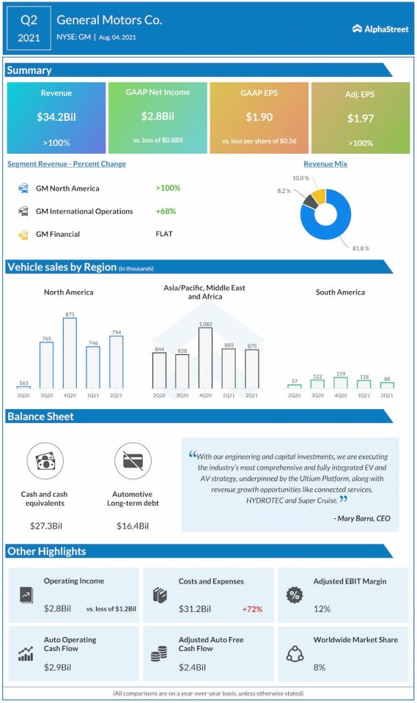 General Motors Co. (NYSE: GM) on Wednesday reported lower revenues and earnings for the third quarter of 2021. However, the results beat analysts’ estimates.