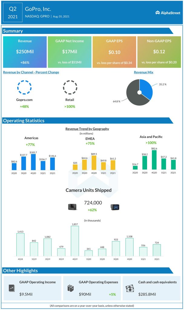 GoPro, Inc. (NASDAQ: GPRO) today reported its second quarter financial results for the period ended June 30, 2021.