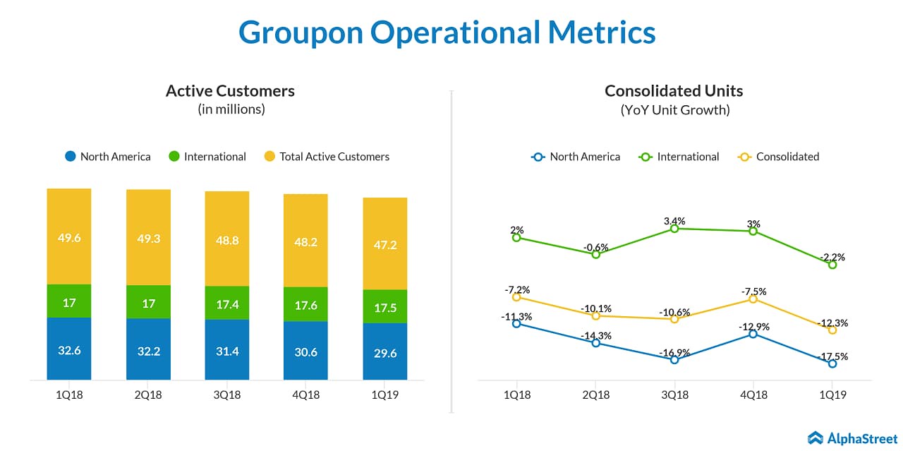 Excluding the UK, customers in the International region grew in the first quarter and the company expects to continue to see that in the second quarter. Total active customers decreased to 47.2 million in Q1 2019 from 49.6 million in Q1 2018. North America saw a drop of 3 million active customers in the March 2019 quarter.