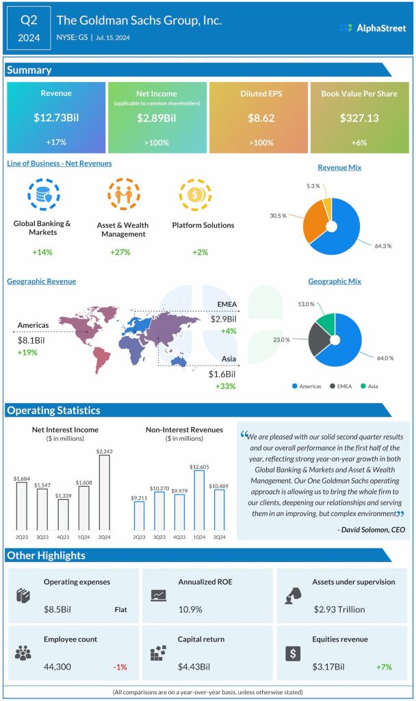 “Our performance demonstrates the strength of our world-class franchise in an improving operating environment. We continue to lean into our strengths – exceptional talent, execution capabilities, and risk management expertise – allowing us to effectively serve our clients against a complex backdrop and deliver for shareholders,” said the bank’s CEO David Solomon.