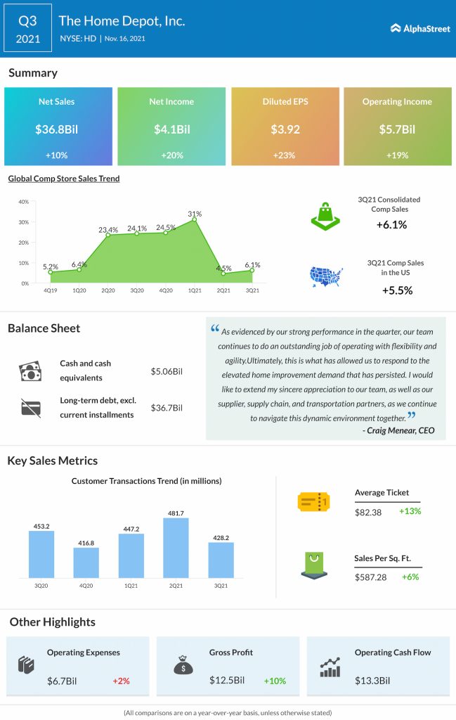 The Home Depot, Inc. (NYSE: HD) reported third-quarter 2021 earnings results today.