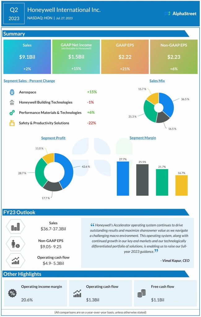 Honeywell (NASDAQ: HON) reported sales of $9.2 billion for the third quarter of 2023, which was up 3% on a reported basis and 2% on an organic basis versus the same period a year ago.