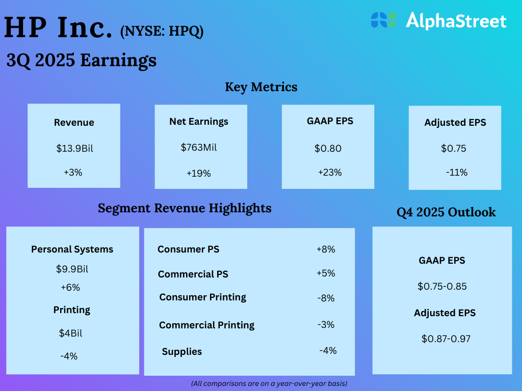HP Inc. (NYSE: HPQ) reported its third quarter 2025 earnings results today.