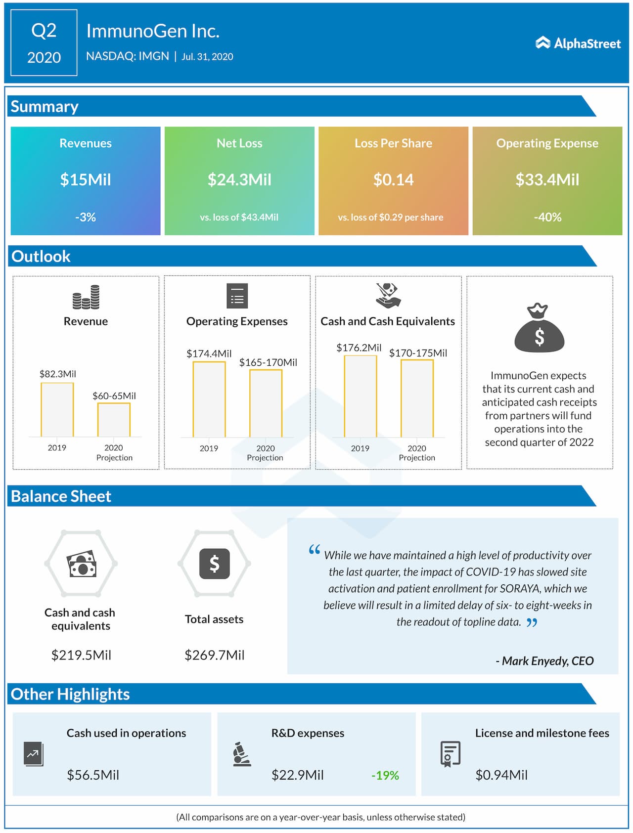 ImmunoGen Inc. (NASDAQ: IMGN) reported second quarter 2020 earnings results today.