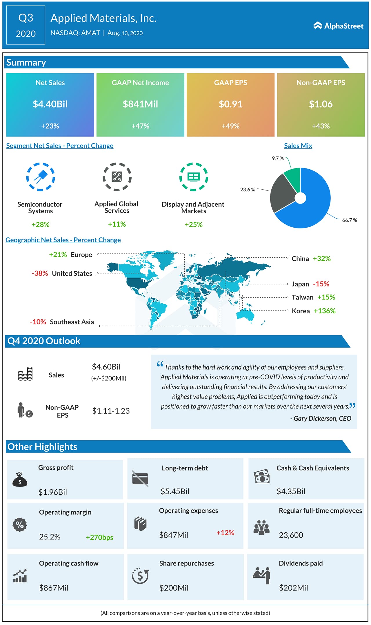 AMAT shares rose 2.7% immediately following the announcement. The stock has gained 13% since the beginning of this year.