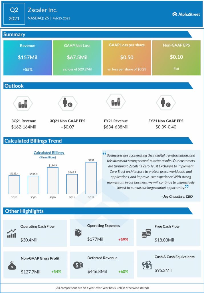 Zscaler (NASDAQ: ZS) reported second-quarter 2021 financial results after the regular trading hours on Thursday.