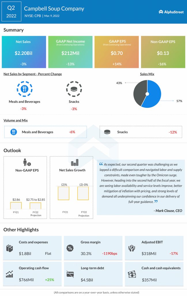 Campbell Soup Company (NYSE: CPB) reported third quarter 2022 earnings results today.
