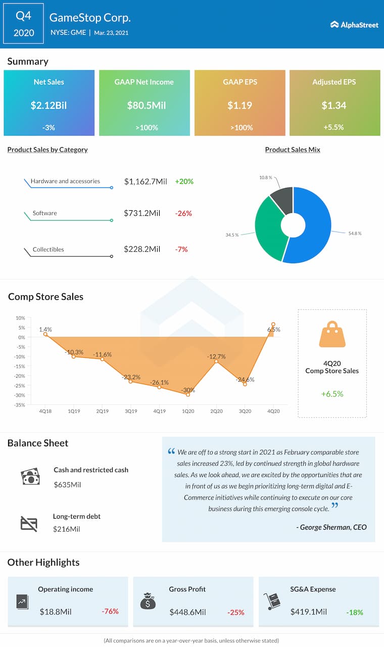 GameStop Corp. (NYSE: GME) reported its fourth quarter 2020 earnings results today.