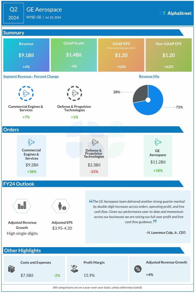 GE Aerospace (NYSE: GE) reported its second quarter 2024 earnings results today.