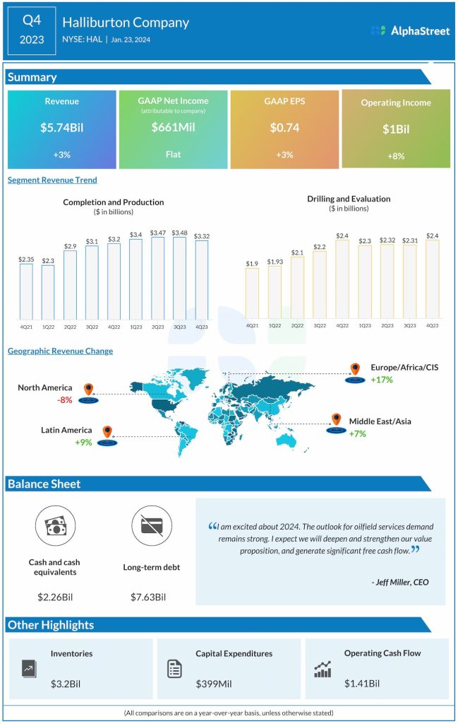 Halliburton Company (NYSE: HAL) reported fourth quarter 2023 earnings results today.