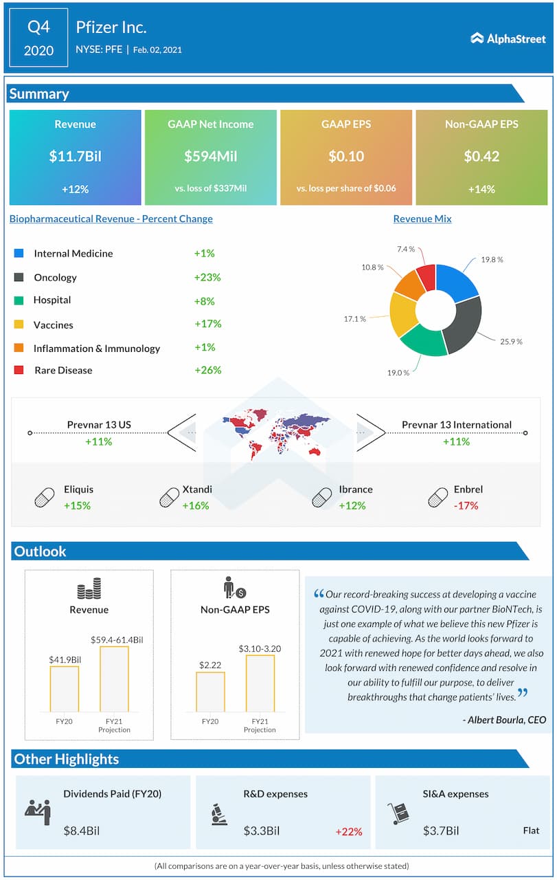 Pfizer raised its full-year 2021 guidance for revenues to a range of $78-80 billion and adjusted EPS to a range of $3.95-4.05.