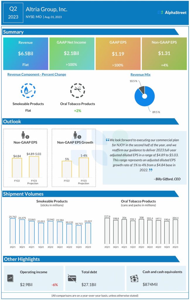 Altria Group, Inc. (NYSE: MO) reported third quarter 2023 earnings results today.