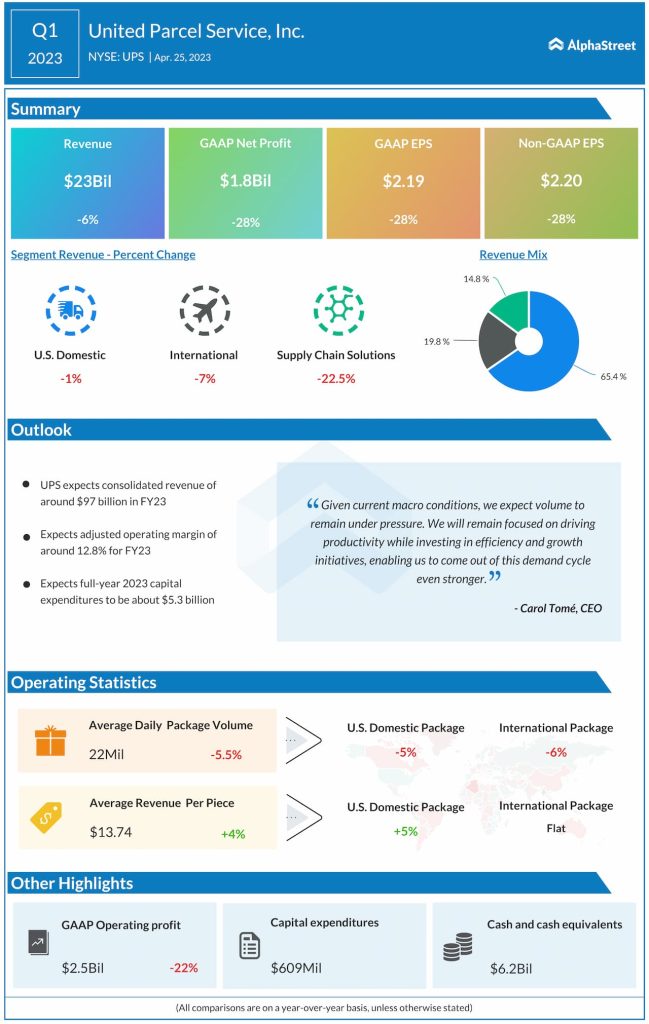 United Parcel Service, Inc. (NYSE: UPS) reported second quarter 2023 earnings results today.
