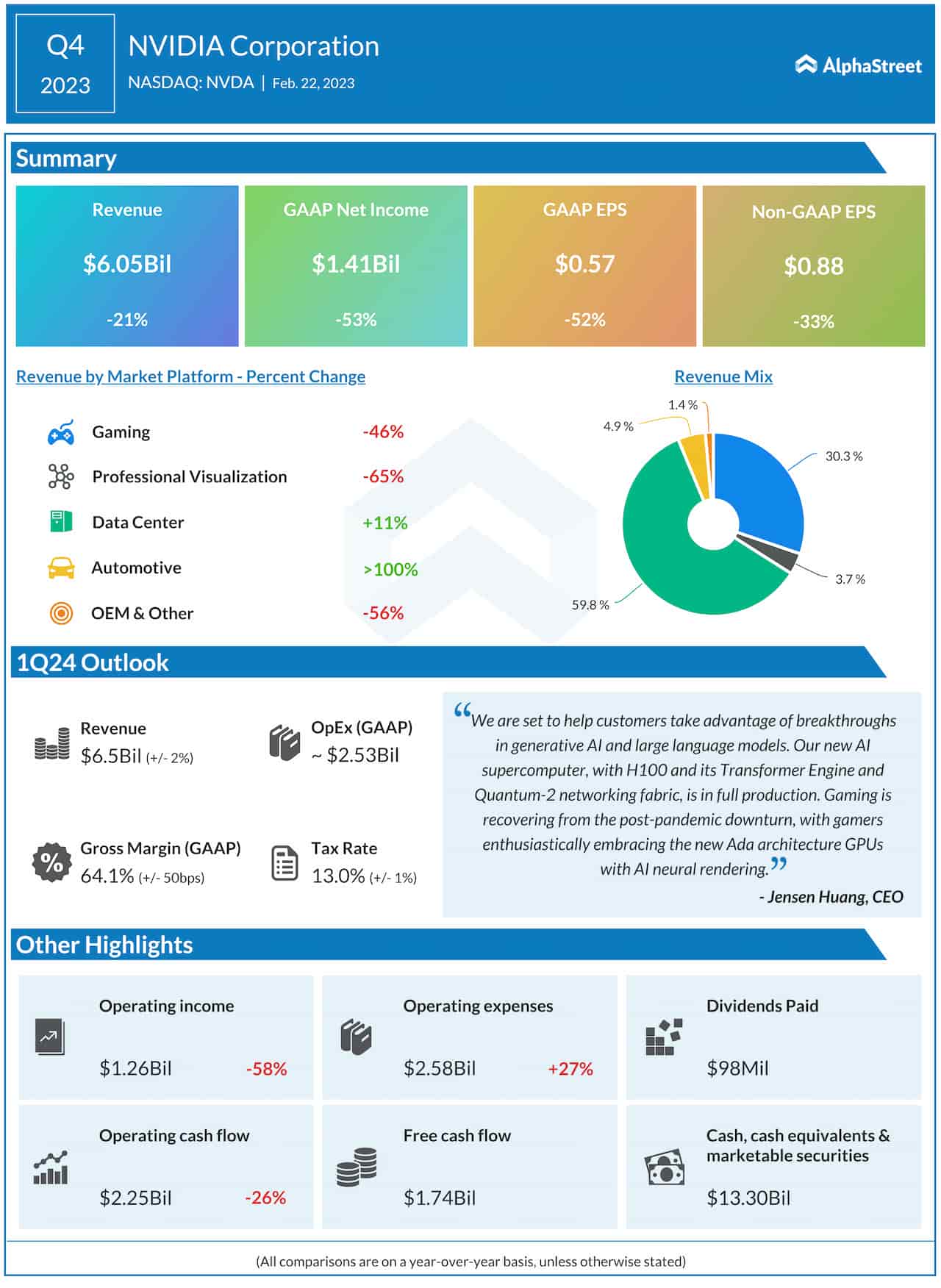 Chipmaker Nvidia Corporation (NASDAQ: NVDA) on Wednesday reported lower revenues and earnings for the fourth quarter of 2023.
