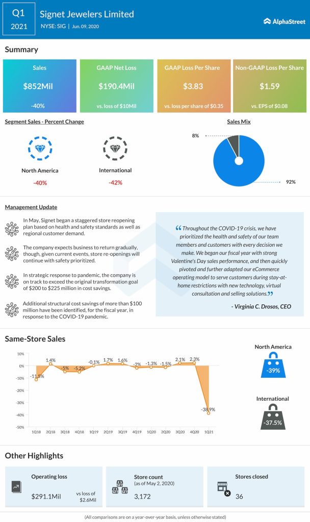 Signet Jewellers (NYSE: SIG) reported second-quarter 2022 financial results before the regular market hours on Thursday. The jewelry retailer reported Q2 revenue of $1.8 billion, double year-over-year and higher than the Wall Street projection. Net income of $3.57 per share was also above the target that analysts had anticipated.