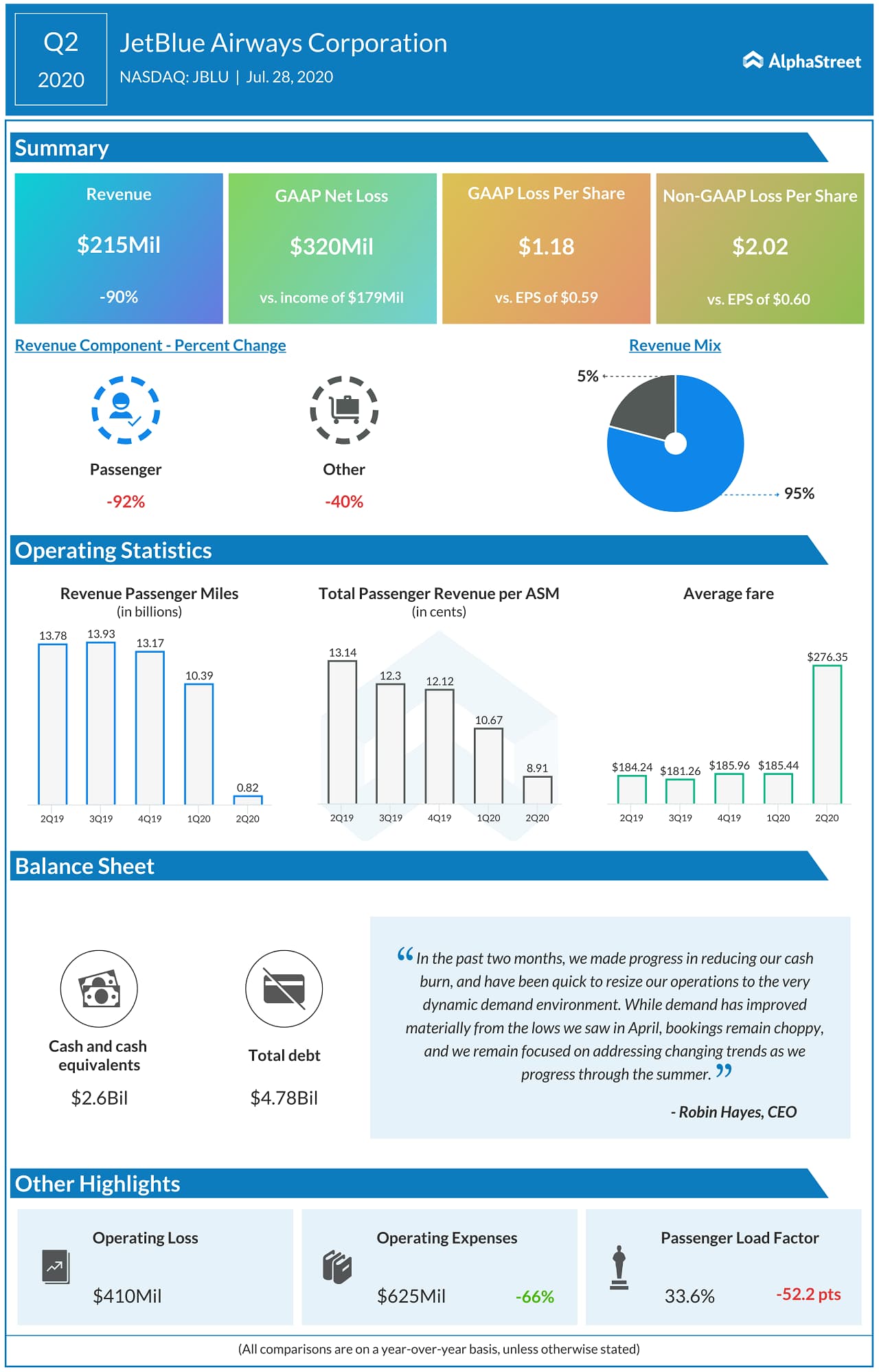 JetBlue Airways (JBLU) Q2 2020 Earnings Infograph