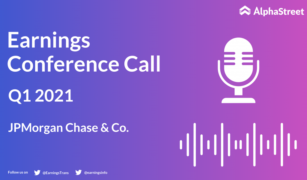 JPMorgan Chase & Co  (NYSE: JPM) Q1 2021 earnings call dated Apr. 14, 2021.