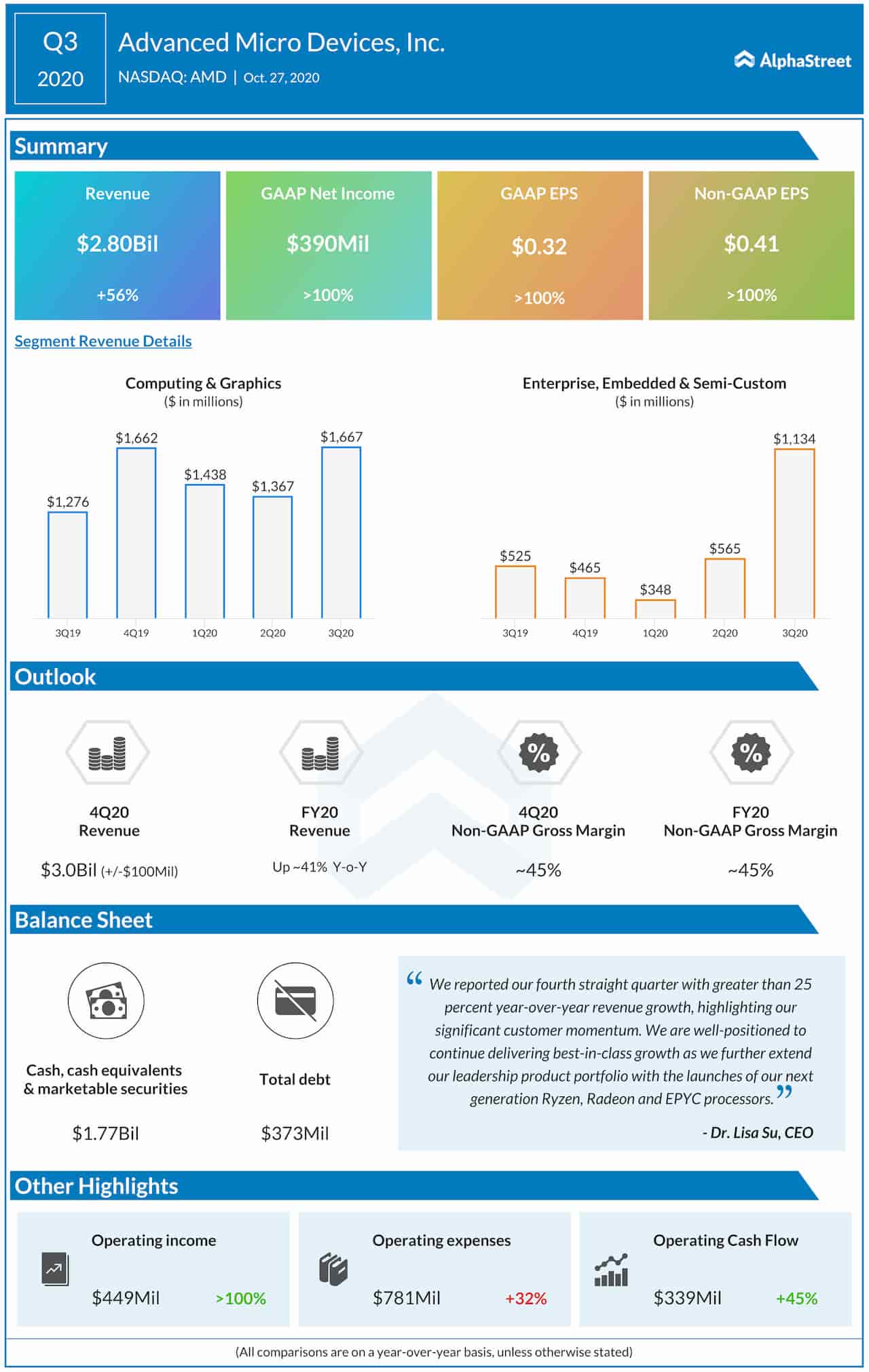 Advanced Micro Devices, Inc. (NASDAQ: AMD) reported fourth quarter 2020 earnings results today.