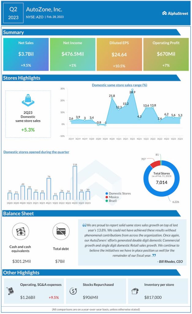 Key highlights from AutoZone (AZO) Q2 2023 earnings results