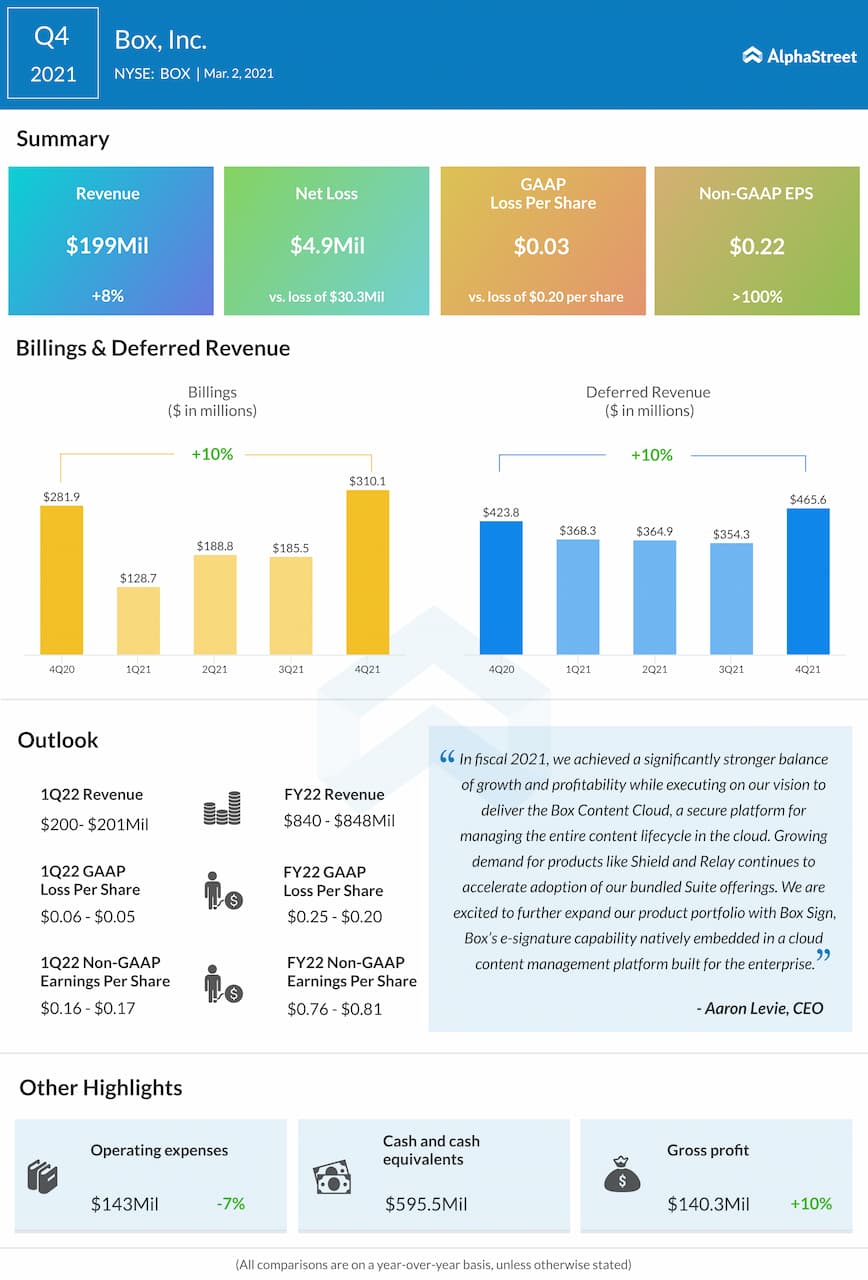 Box Inc. (NYSE: BOX) reported fourth quarter 2021 earnings results today.