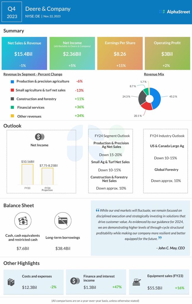 Deere & Company (NYSE: DE) reported first quarter 2024 earnings results today.