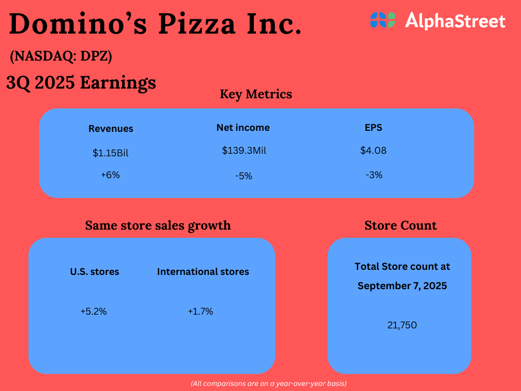 Domino’s Pizza, Inc. (NASDAQ: DPZ) reported its third quarter 2025 earnings results today.