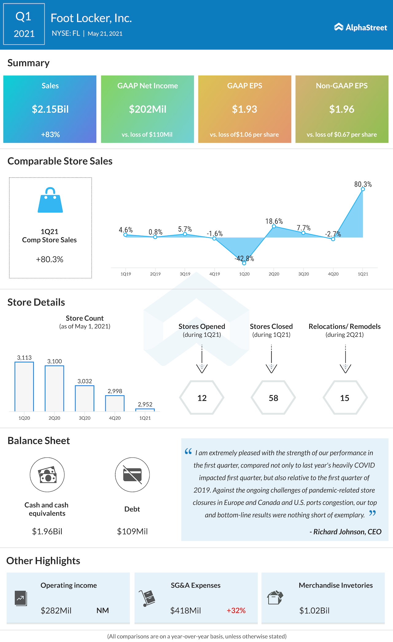 Foot Locker, Inc. (NYSE: FL) reported second quarter 2021 earnings results today.