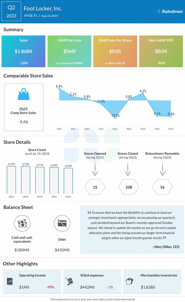 Foot Locker, Inc. (NYSE: FL) reported second quarter 2023 earnings results today.