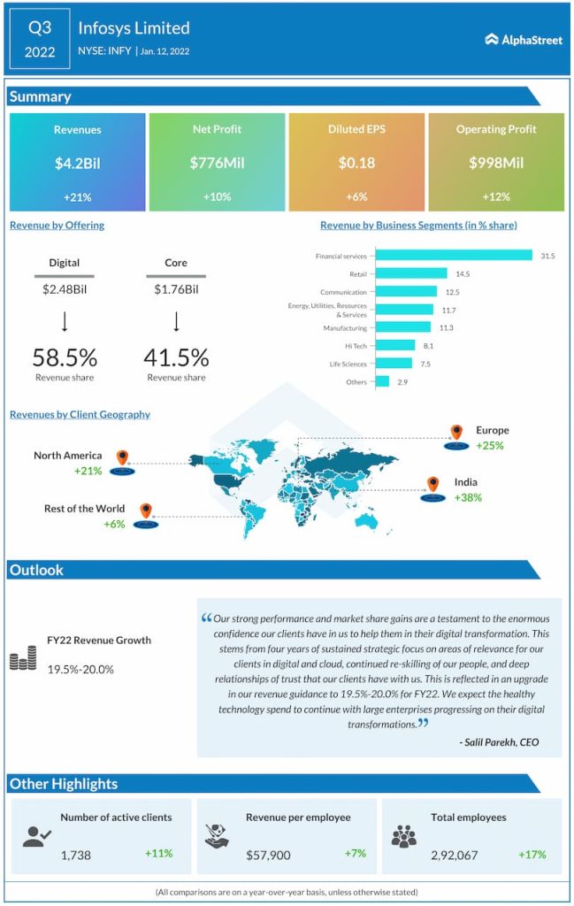 Infosys (NYSE: INFY) reported third quarter 2022 earnings results today.