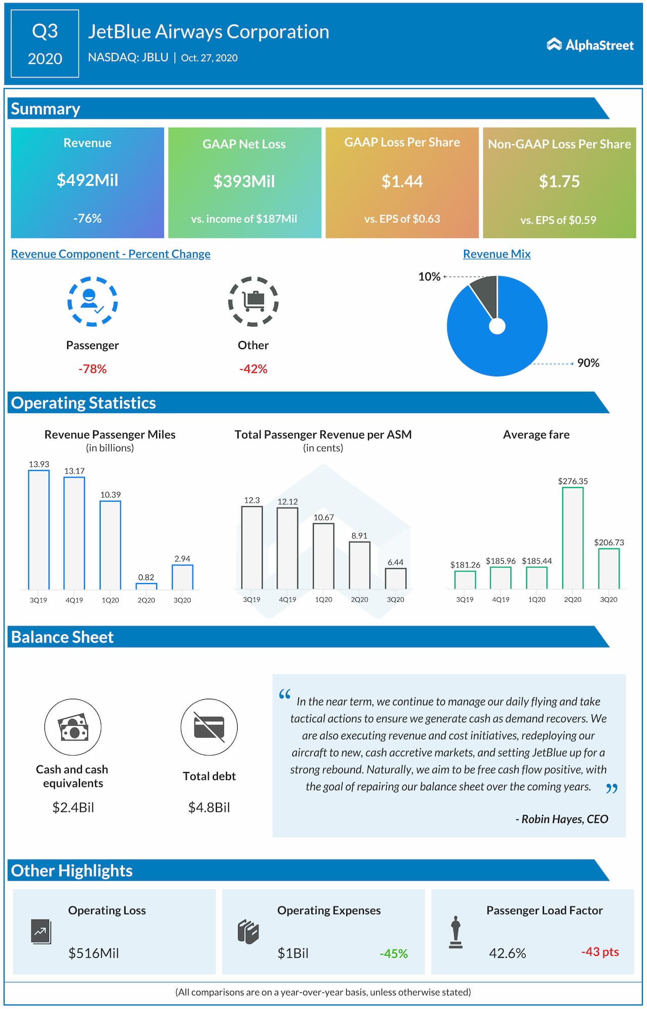JetBlue Airways Corporation (NASDAQ: JBLU) reported fourth quarter 2020 earnings results today.