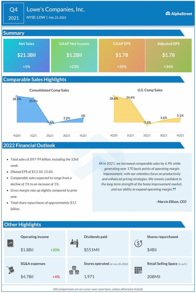 Lowe’s Companies, Inc. (NYSE: LOW) reported fourth quarter 2021 earnings results today.