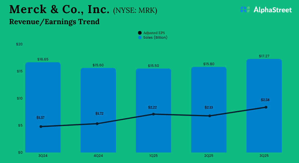 Merck & Co., Inc. (NYSE: MRK) reported its third quarter 2025 earnings results today.