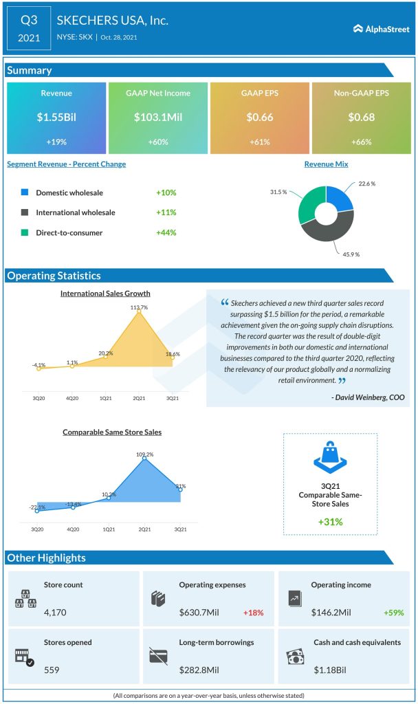 Skechers USA (NYSE: SKX) reported its third quarter financial results for the period ended September 30, 2021.