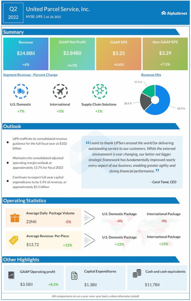 United Parcel Service, Inc. (NYSE: UPS) reported second quarter 2022 earnings results today.
