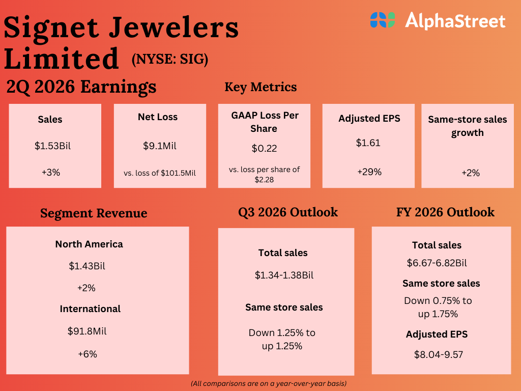 Signet Jewelers Limited (NYSE: SIG) reported its second quarter 2026 earnings results today.